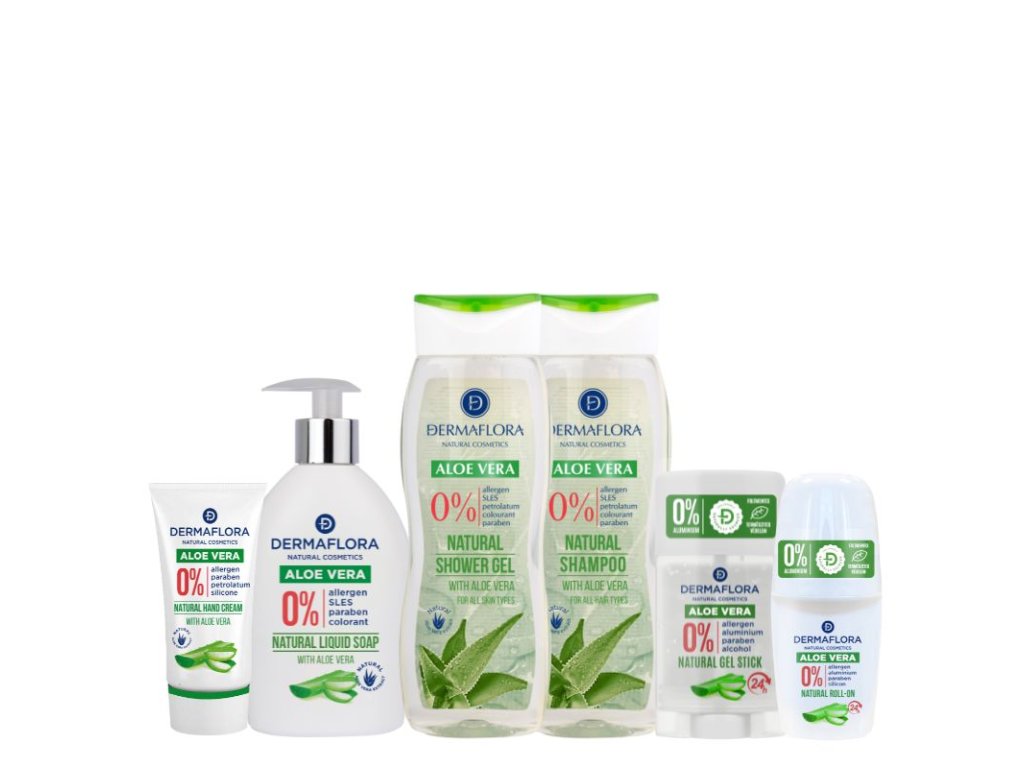 Extractul de Aloe Vera (Suc din frunze de Aloe Barbadensis) hidratează, regenerează, răcorește suprafața pielii, o hrănește, o hidratează și o întărește, având un conținut ridicat de minerale și proteine.