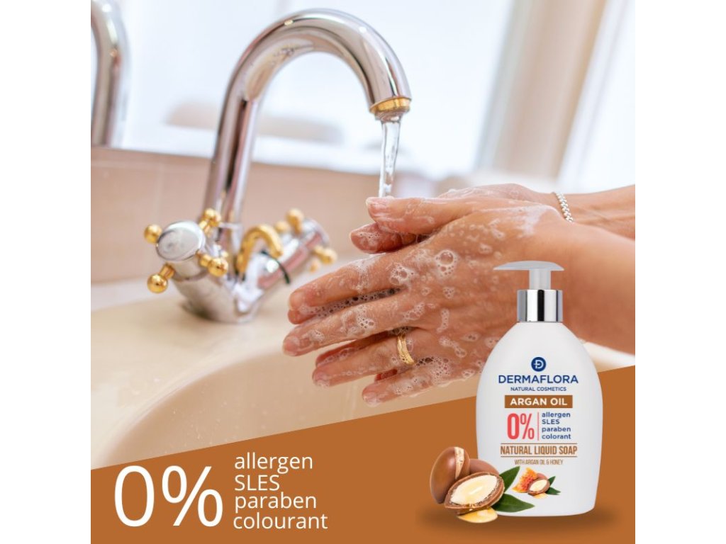Săpunul lichid Dermaflora cu ulei de argan și miere este o alegere ideală pentru oricine caută o îngrijire de înaltă calitate, naturală și eficientă pentru mâinile sale. Este potrivit pentru utilizarea zilnică, pentru întreaga familie, inclusiv copii și seniori, și datorită compoziției sale delicate, poate proteja, hrăni și menține pielea în stare optimă pentru o lungă perioadă de timp. Rezultatul utilizării regulate este o piele a mâinilor sănătoasă, hidratată, moale și protejată, care rezistă rigorilor vieții de zi cu zi și rămâne frumoasă și plăcută la atingere pe tot parcursul zilei.