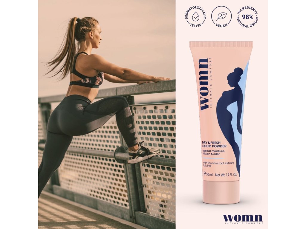 Pudra lichidă WOMN Dry & Fresh oferă o protecție delicată, dar eficientă, pentru zonele sensibile împotriva umezelii, frecării și mirosurilor neplăcute.